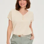 BLUSA MANGA CORTA DE MUJER COLOR CREMA 100% ALGODÓN