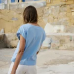BLUSA MANGA CORTA DE MUJER COLOR AZUL CLARO 100% ALGODÓN
