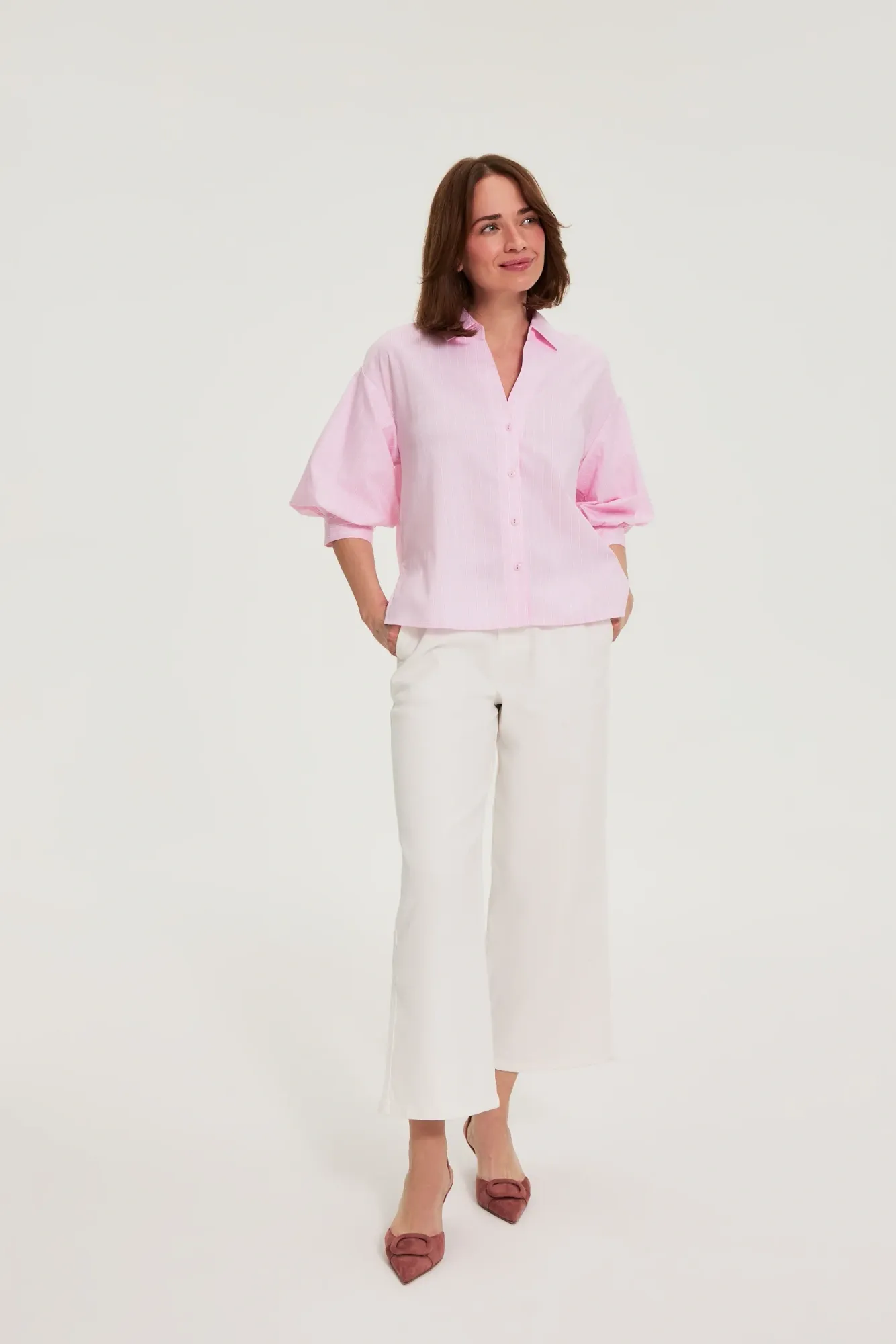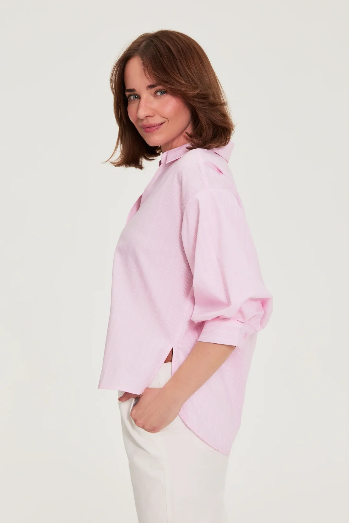 CAMISA DE MUJER COLOR ROSA CLARO 70% POLIÉSTER 28% ALGODÓN 2% ELASTANO