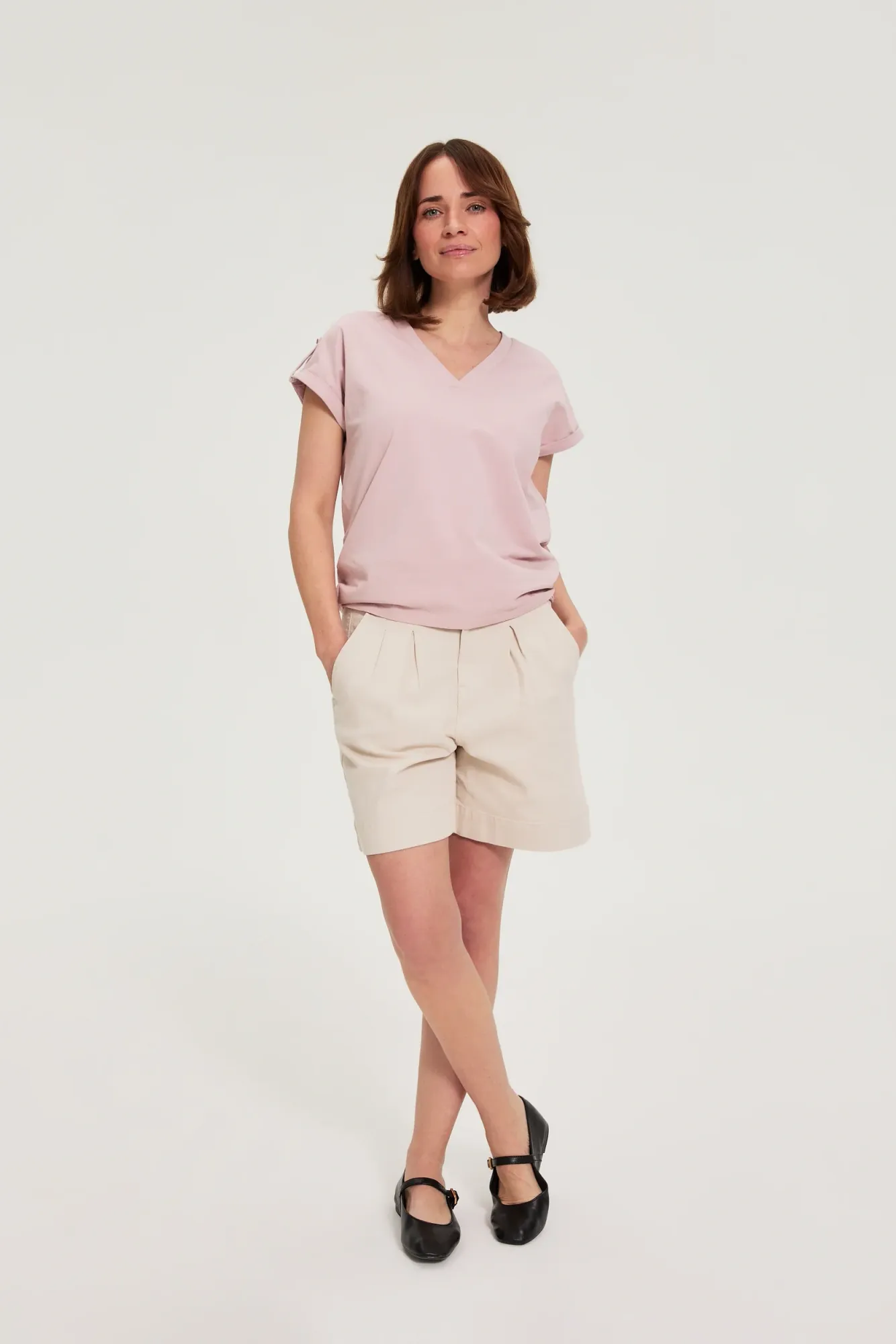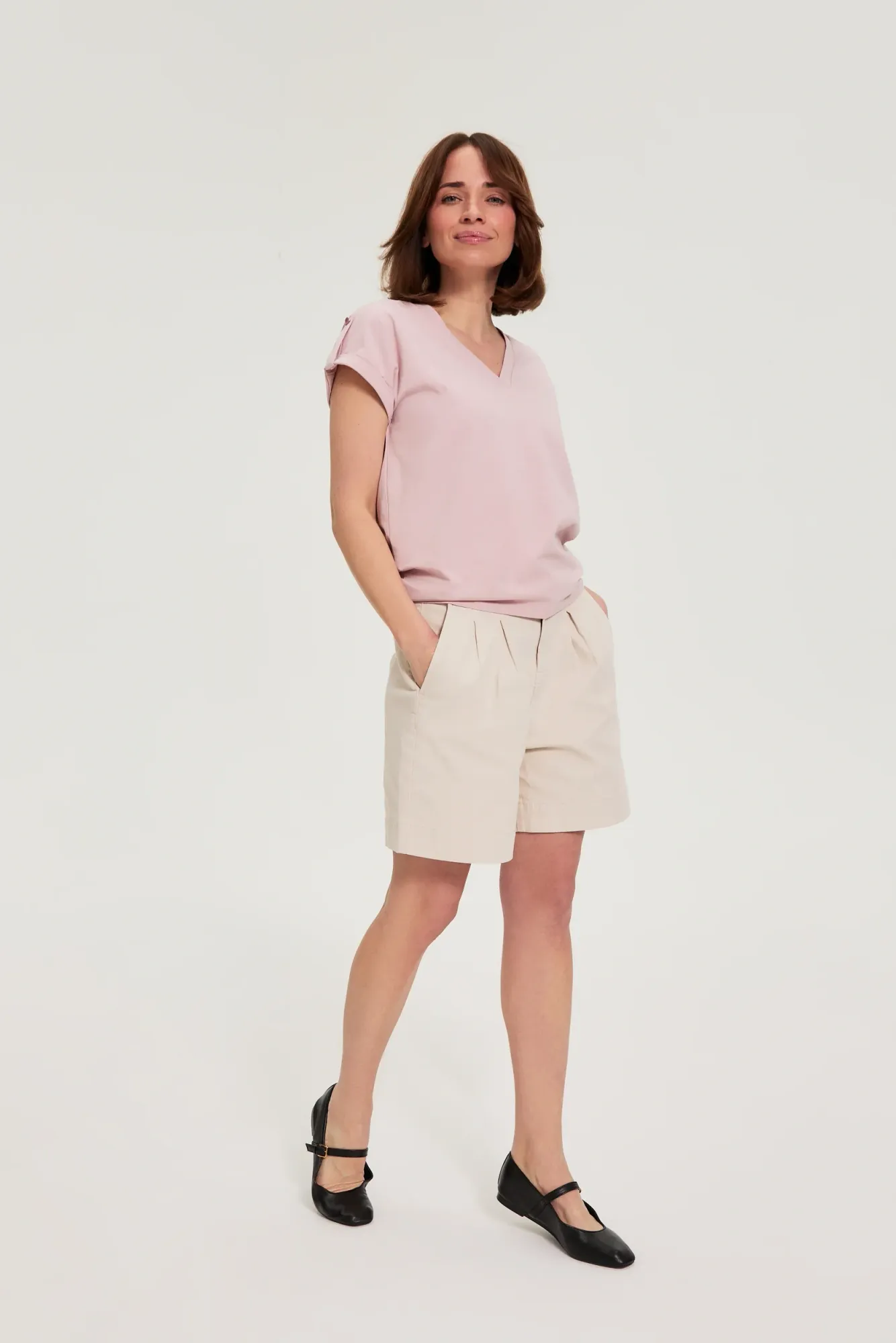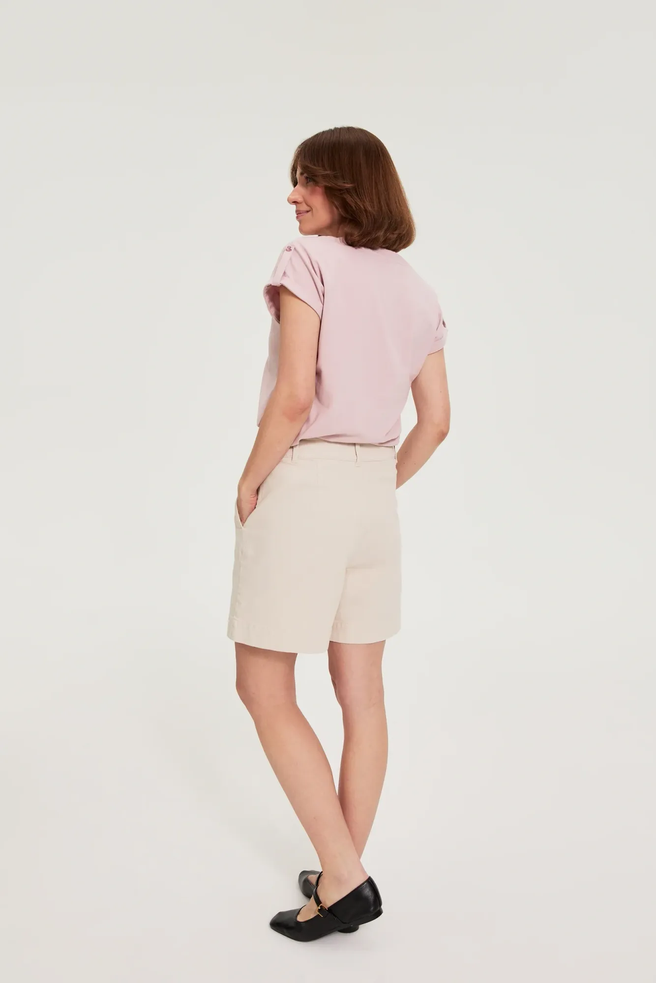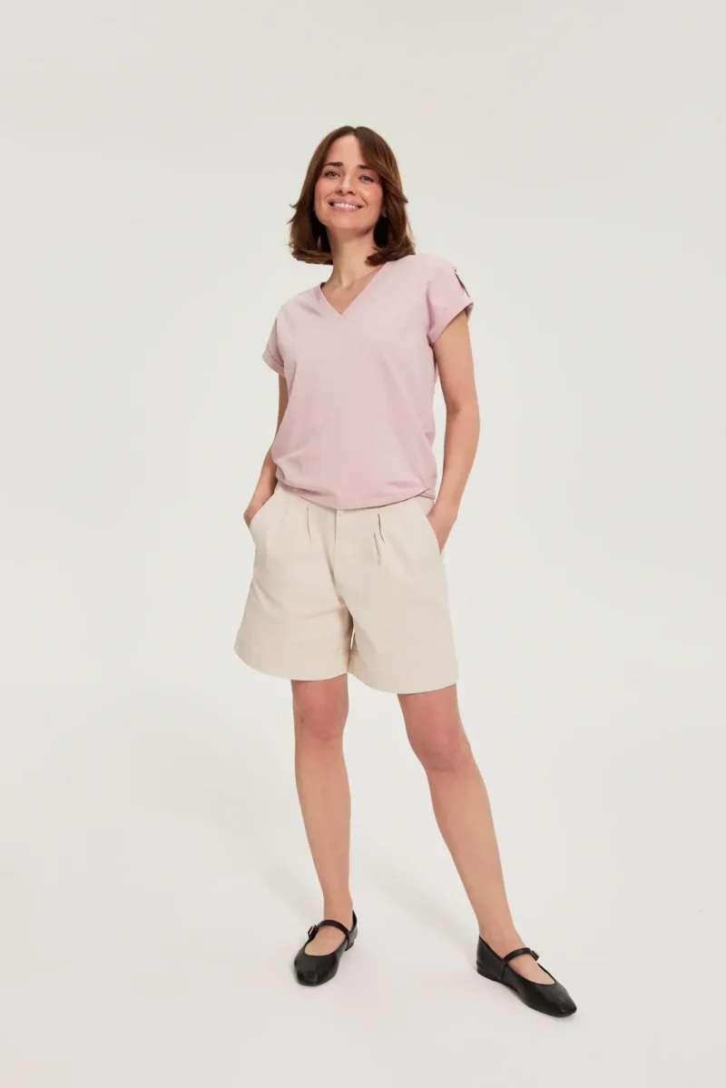 SHORT DE MUJER COLOR BEIGE CLARO 70% ALGODÓN, 18% LYOCELLL, 10% VISCOSA, 2% ELASTANO