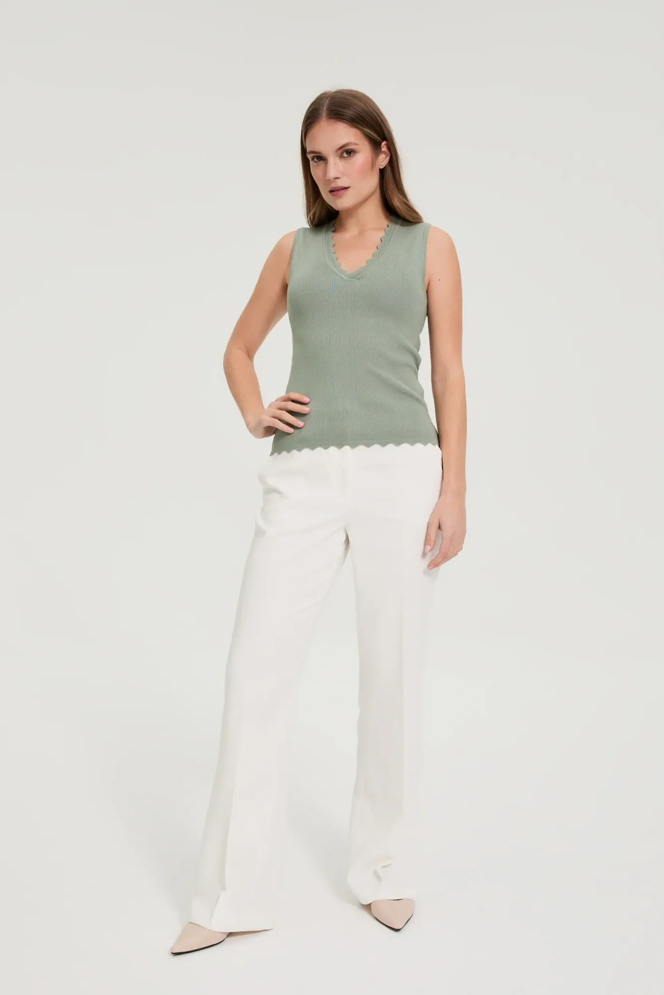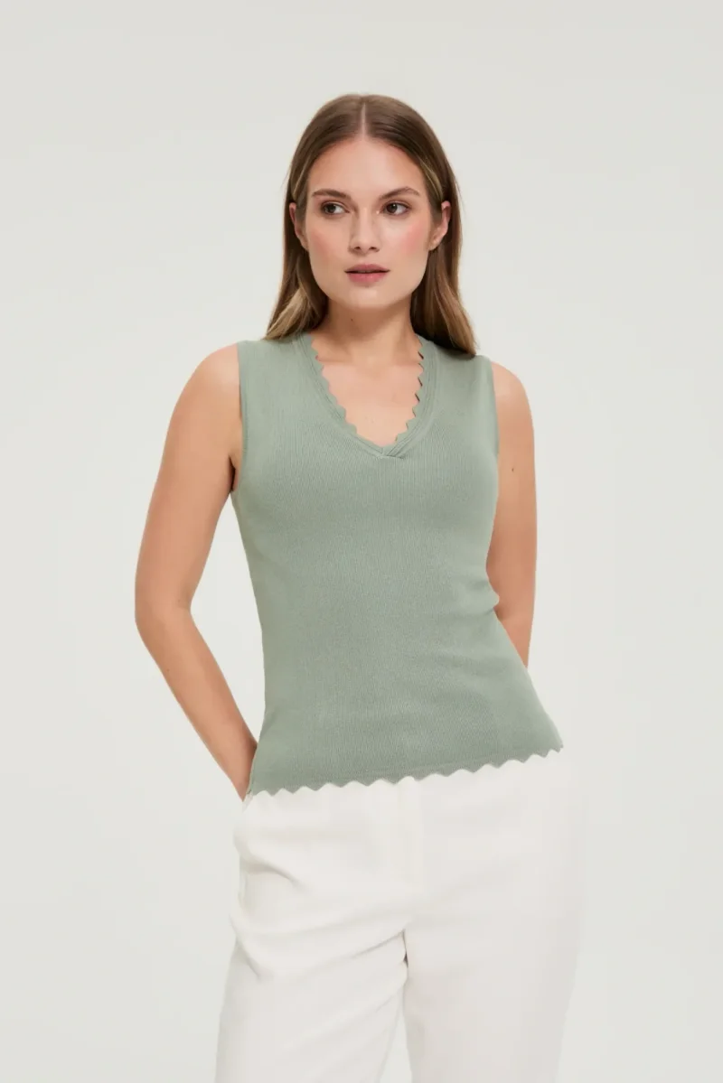 TOP DE MUJER COLOR OLIVA 70% VISCOSA, 30% POLIAMIDA