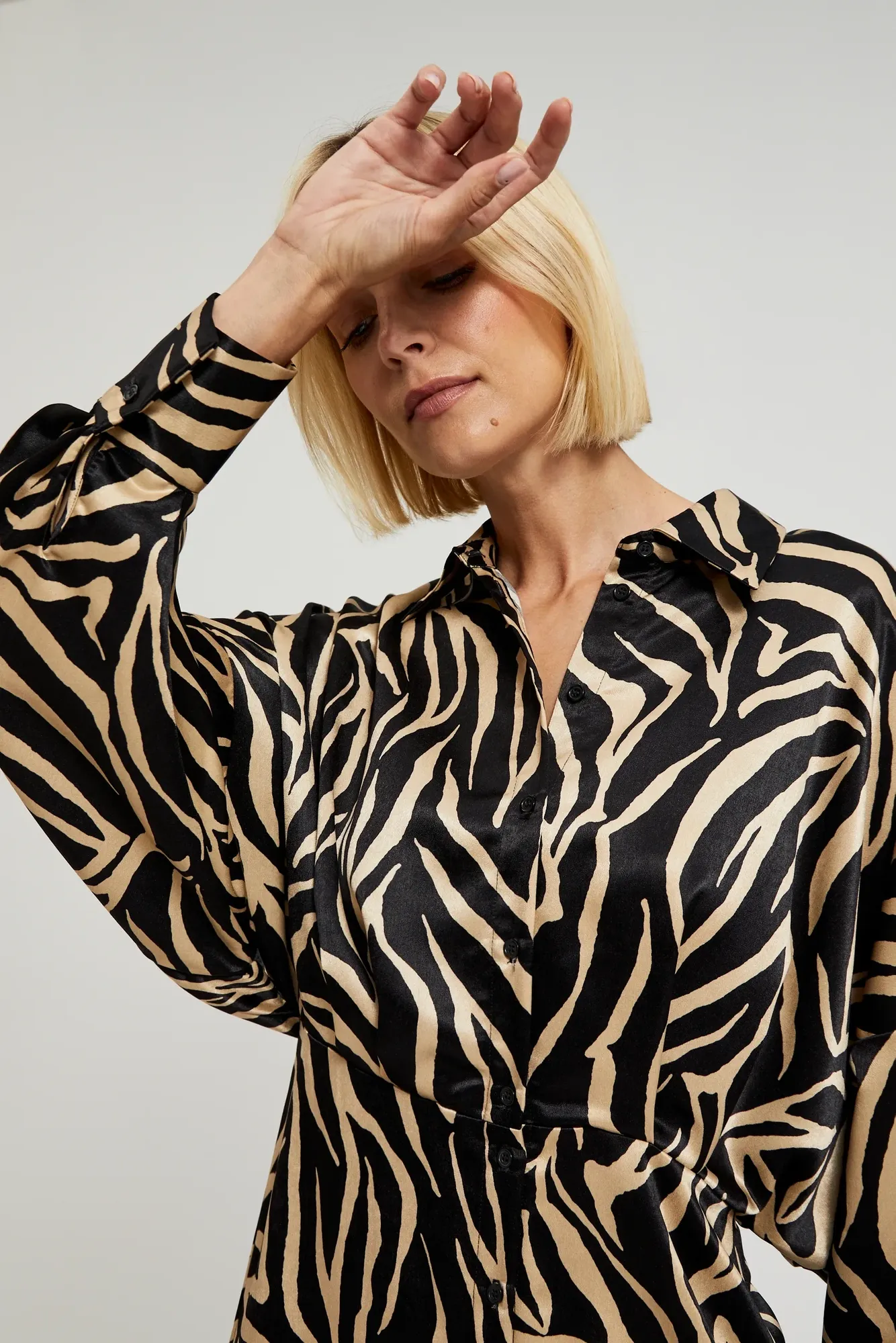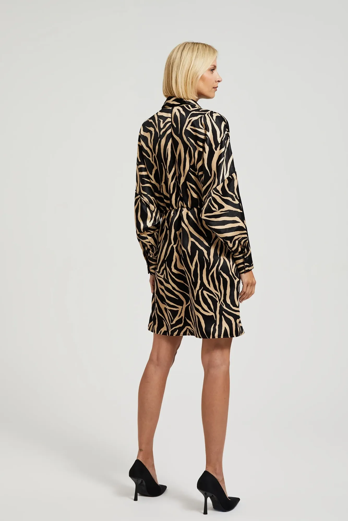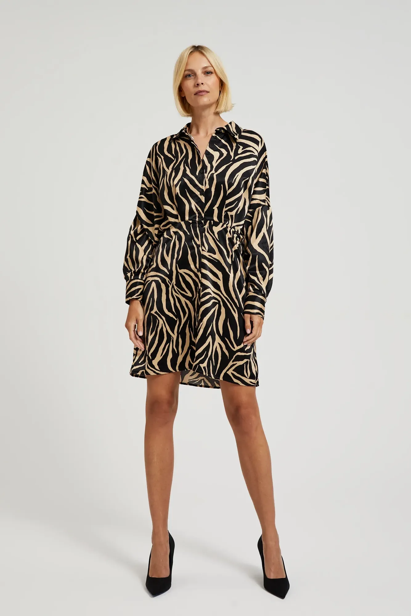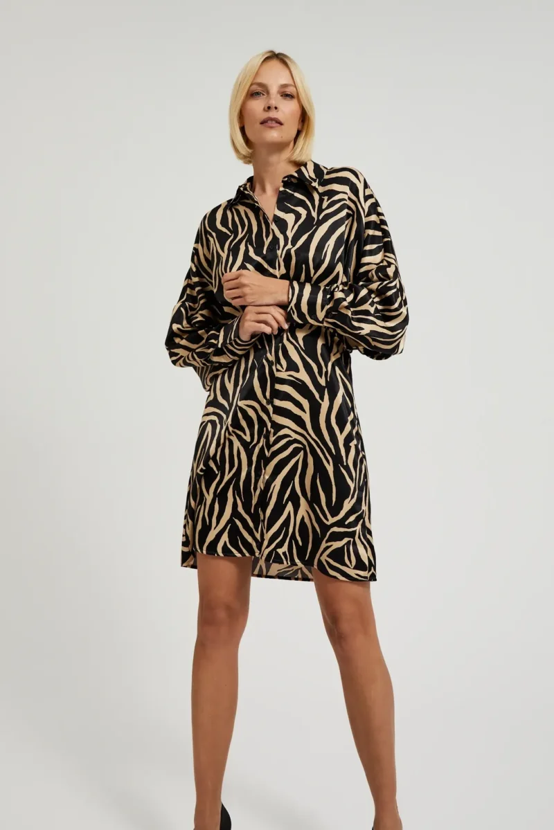 100%POLIESTER Sukienka wykonana z wysokiej jakości poliestru. Sukienka ma guziki, marszczenia i gumę w pasie, co sprawia, że doskonale podkreśli. Kołnierzyk nadaje jej elegancki wygląd, ale jednocześnie pasuje do casualowego stylu. Fason sukienki jest trapezowy, taliowany, sięgający przed kolano. Sukienka jest idealna na specjalne okazje oraz do pracy, ale również świetnie sprawdzi się na co dzień. Doskonale komponuje się zarówno z szmizjerką, jak i eleganckim żakietem. Dzięki guzikom i kołnierzykowi sukienka nabiera charakteru i sprawia, że każda kobieta poczuje się wyjątkowo.